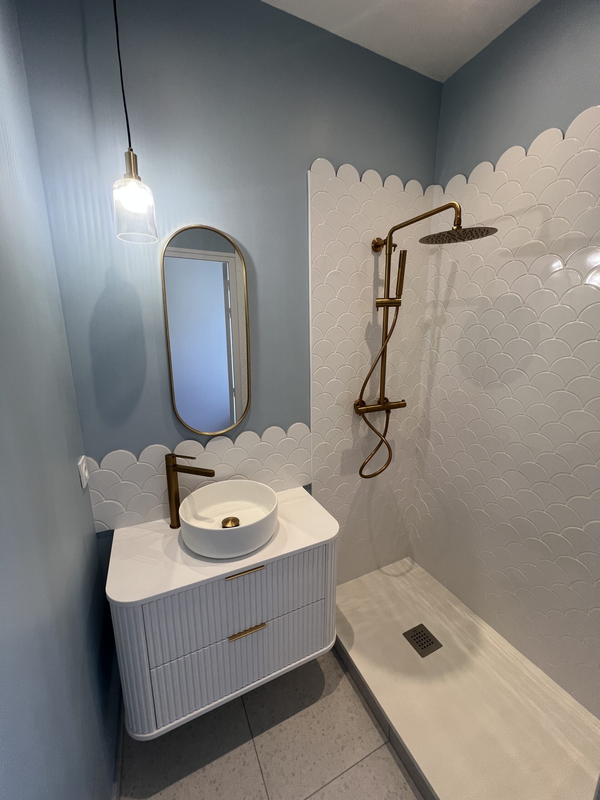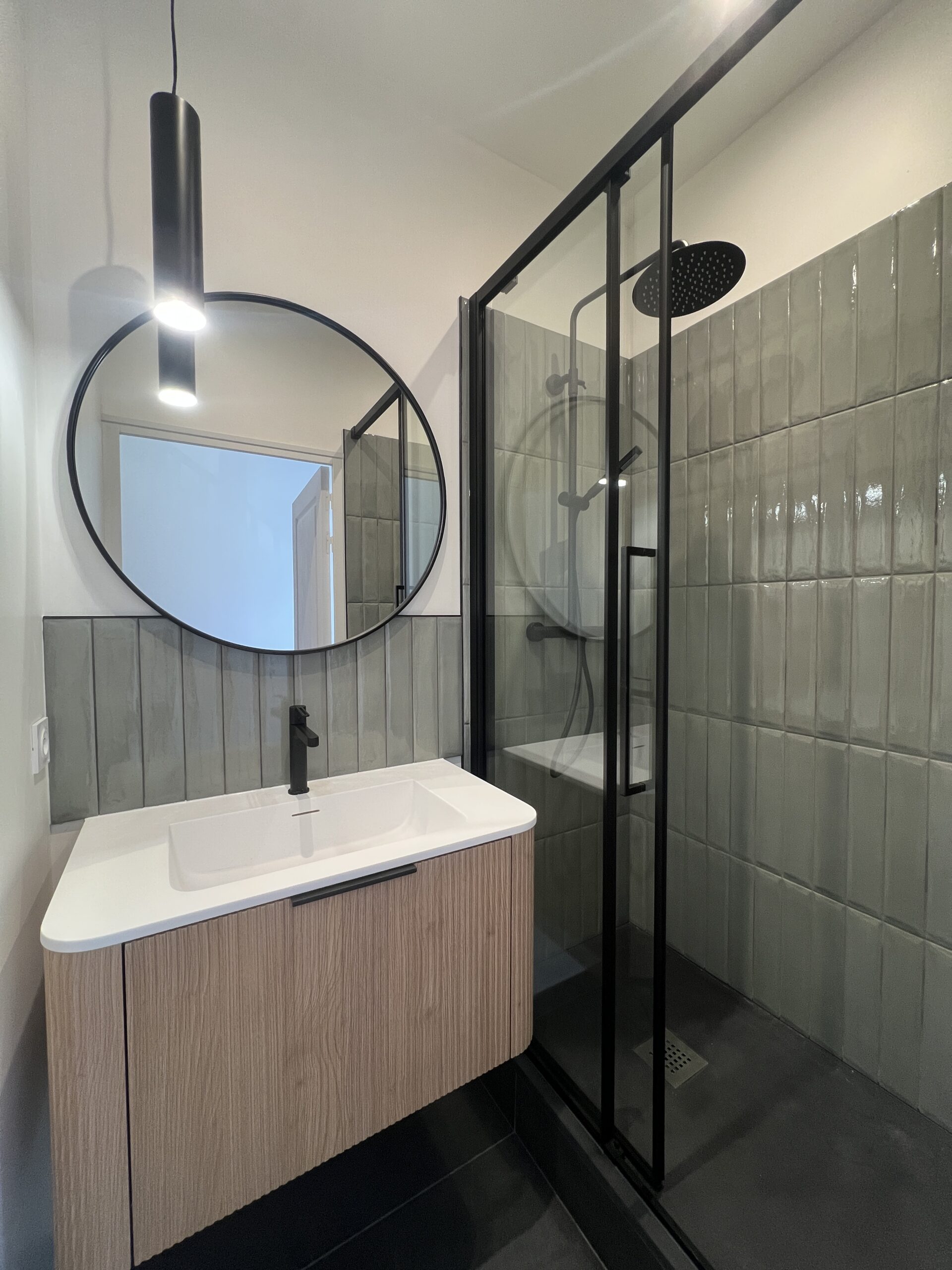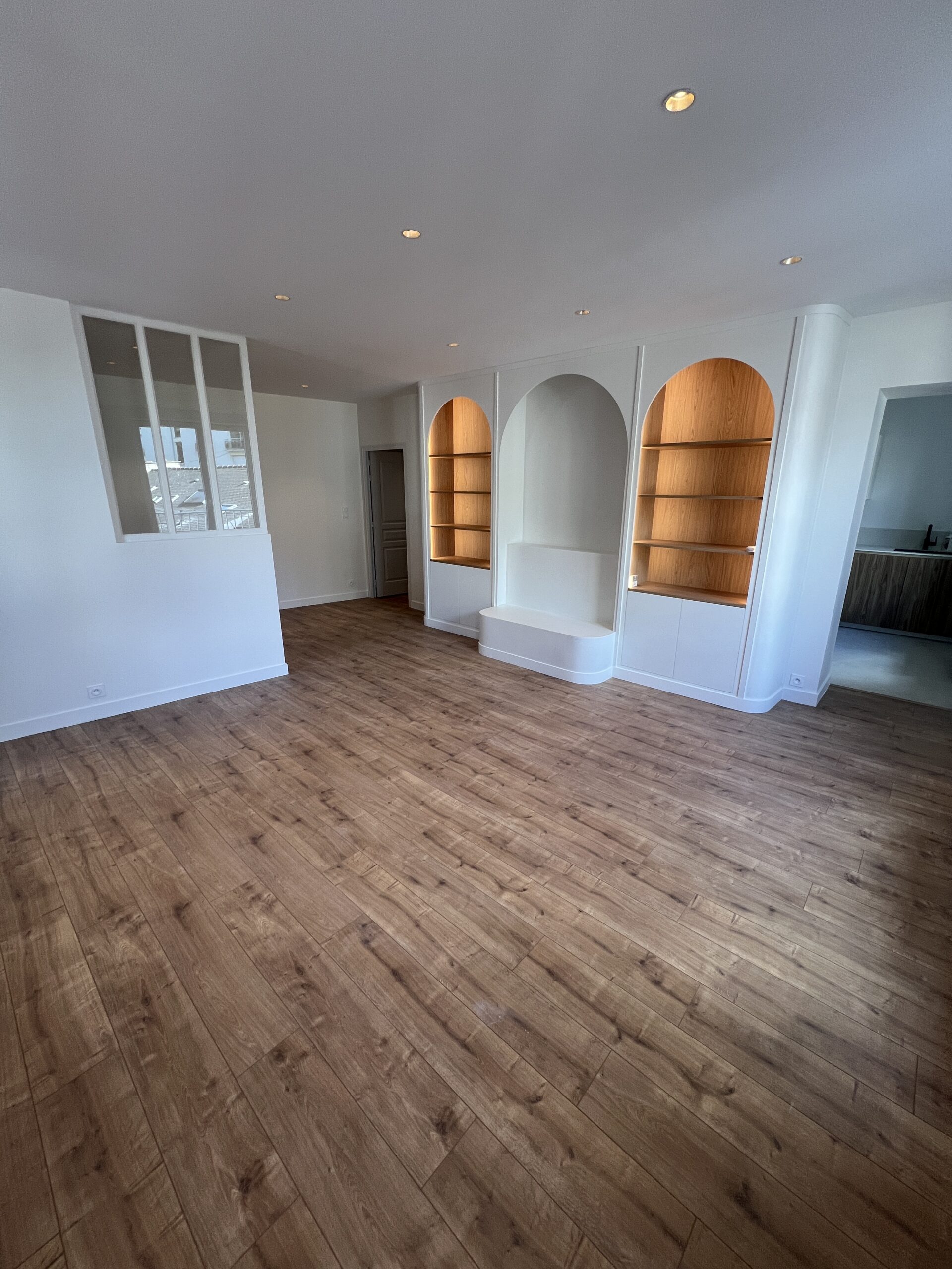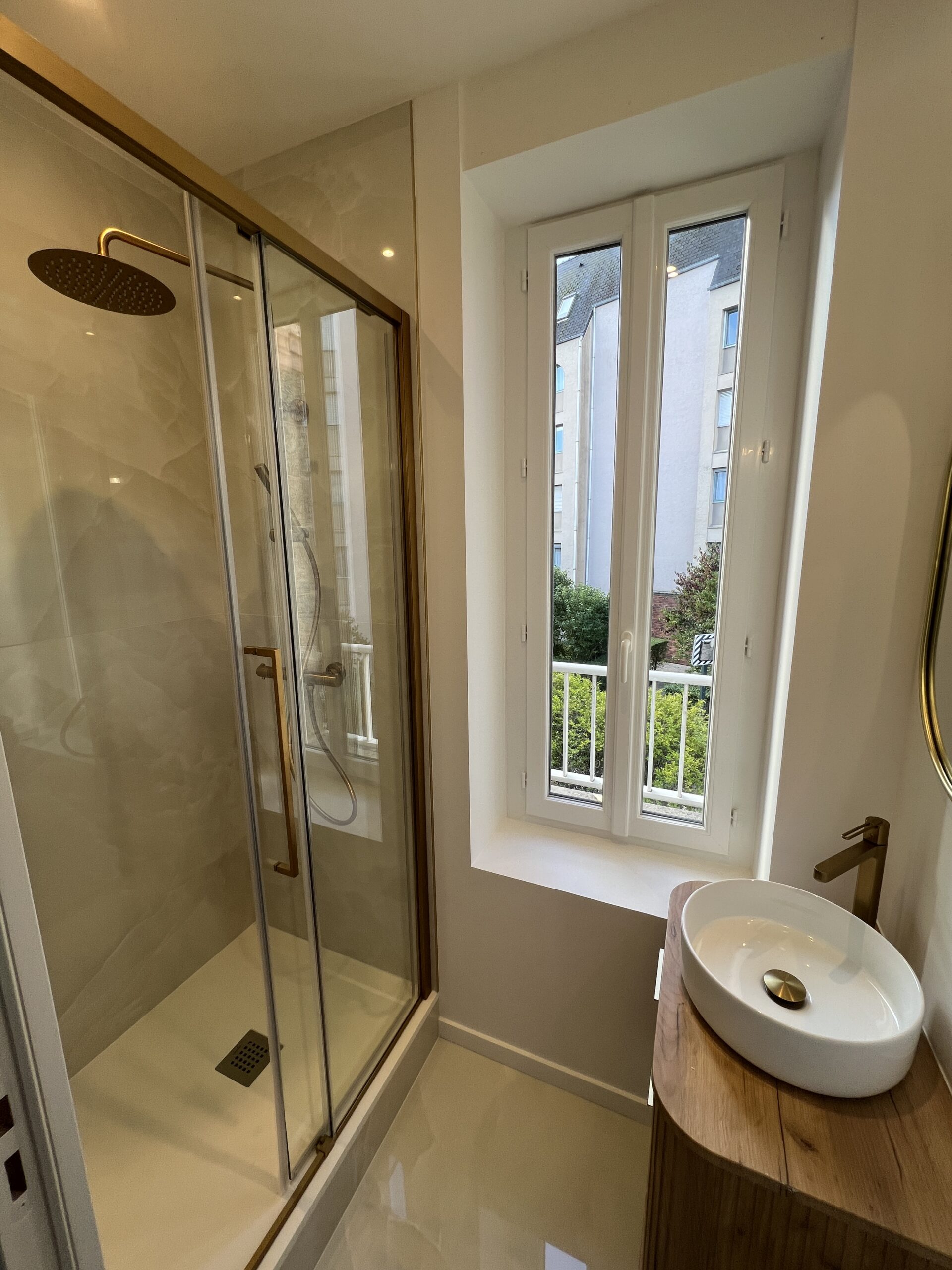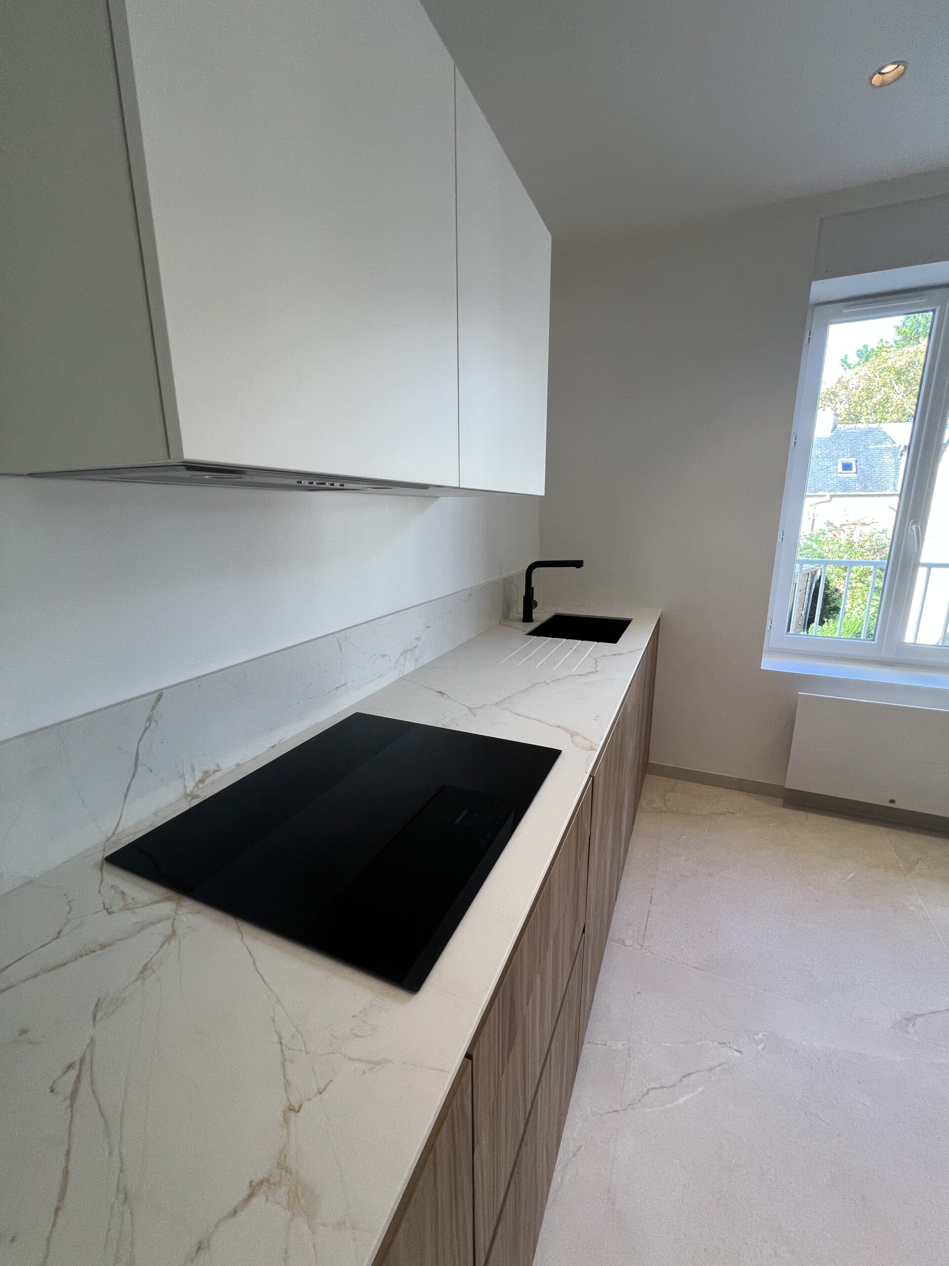Dans le quartier de Saint Enogat à Dinard, ce bel appartement de 100m2 a été entièrement rénové. Sa distribution a été revue entièrement pour offrir des volumes ouverts, généreux et lumineux. Une cuisine indépendante a été créée par un cuisiniste agenceur de renom. Un long couloir dessert l'espace nuit pour desservir trois chambres avec trois salles d'eau privatives. La rénovation est de qualité avec des matériaux nobles et raffinés. Un projet suivi par le maître d'oeuvre de A à Z, de la conception à la livraison du chantier. Un beau projet tendance et chaleureux.